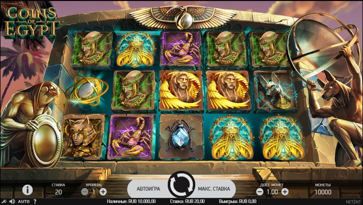 - Coins of Egypt — слот с атмосферой древнеегипетских экспедиций, где игровой процесс приобретает форму археологического поиска;