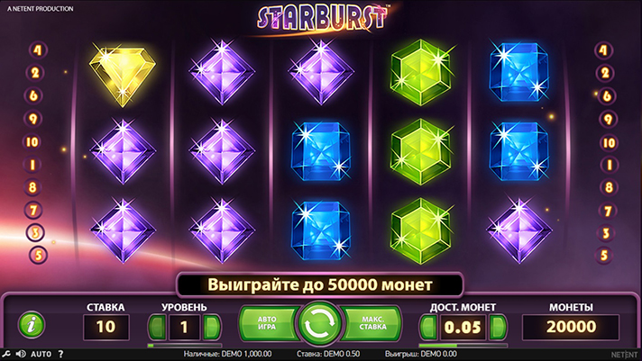 | Starburst | 96.09% | Низкая | х500 | Expanding Wilds, респины |